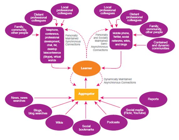 Figure 1: The networked learner receives information from various sources and in turn becomes a source for others’ PLNs.