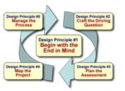 “Project planning is organised according to five design  principles displayed to the right. Scroll over the image at right for an  introduction to each principle, or click to learn in depth about each  principle. In addition, each design principle is supported by a set of resources  and advice from expert PBL teachers. You can find these links on the left of  each page.”