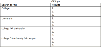 and type in the following search terms. In the results column, list the title of the first three results that come up.